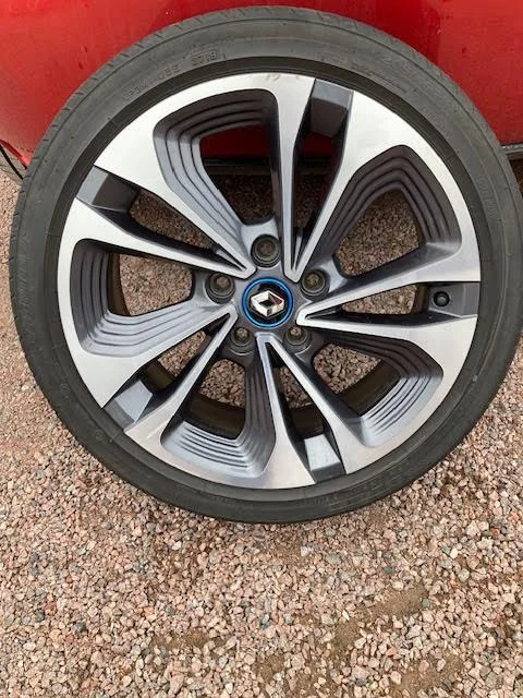 Lättmetallfälgar med lågprofildäck 17\\”. Lågprofildäck som suttit på en Renaut Zoe. Passar även Renault Clio mfl. Ett relativt nytt däck med 4,5 mm mönster, övriga ca 3 mm. någon repa på fälg efter trottoarbesök finns. Däcken ligger bak i bilen och kan köras till Borlänge, Falun, Leksand eller Rättvik.