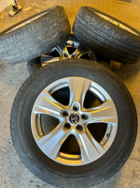 Gått 4 säsonger så däcken lite slitna. Suttit på enToyota RAV 4. 4 st original fälgar från Toyota i bra skick