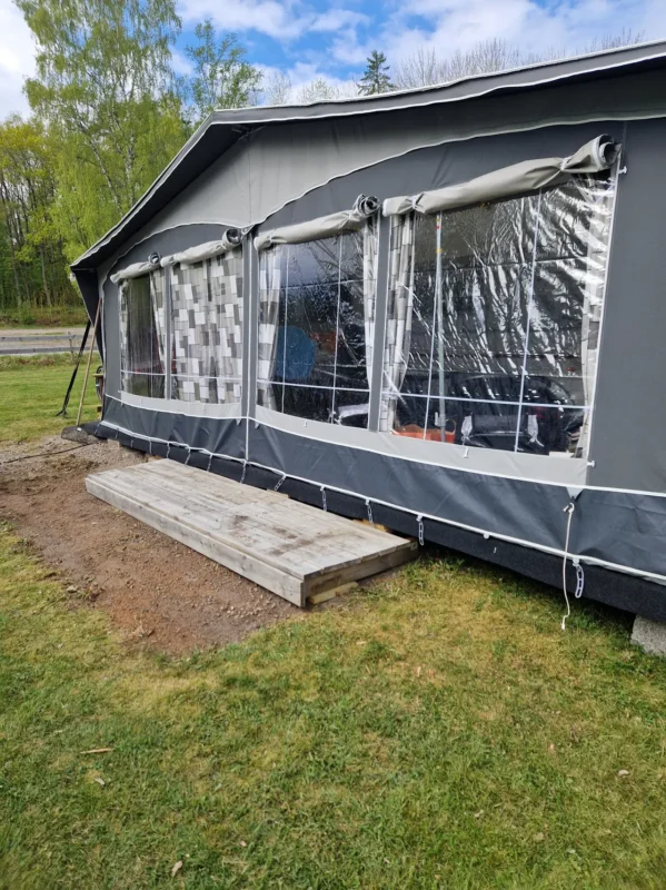 Säljer vårat förtält som suttit på en Cabby 800+ vi testade säsongsplats förra sommaren men det var inget för oss. Utan vi vill istället ha ett mindre smidigare tält/markis för kortare vistelser. Då blir tyvärr detta tält för stort. Men det vart också för kort får våran vagn. Det passade till säsongsplats med uppbyggt golv. Men för kort ner till marken utan golv.