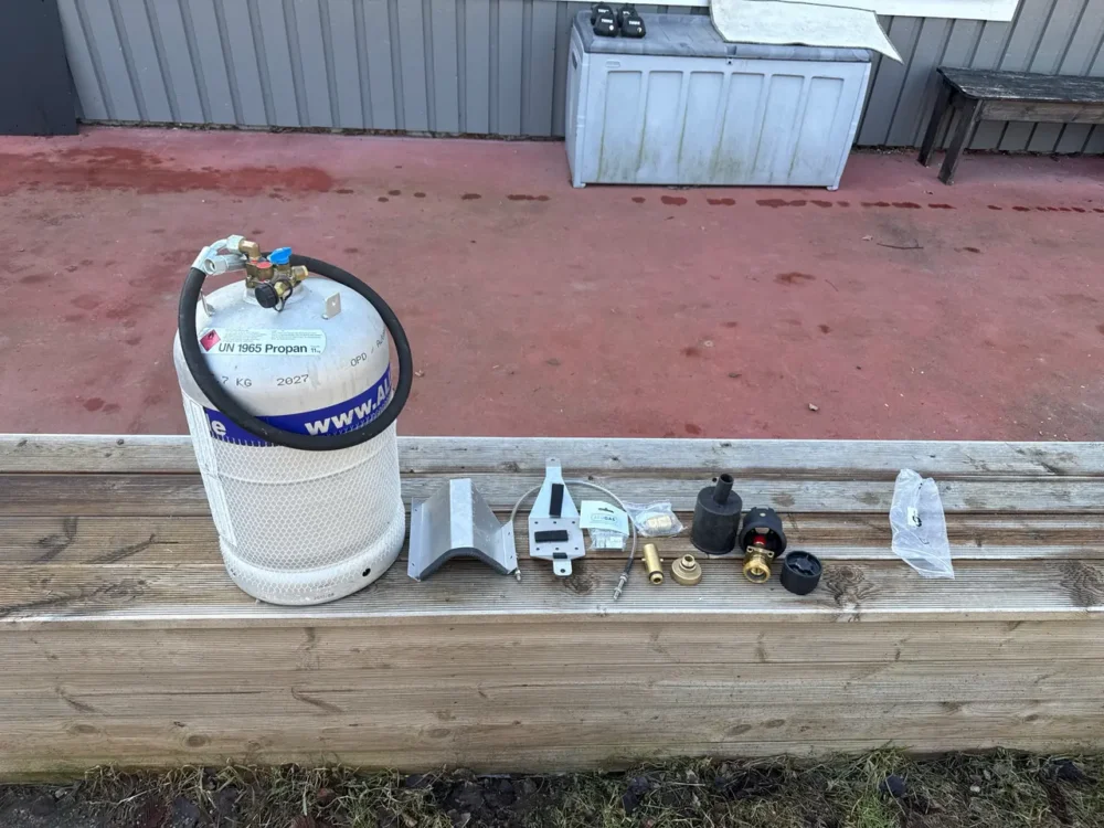 Säljer en flaska för fast montering i husbil eller husvagn.