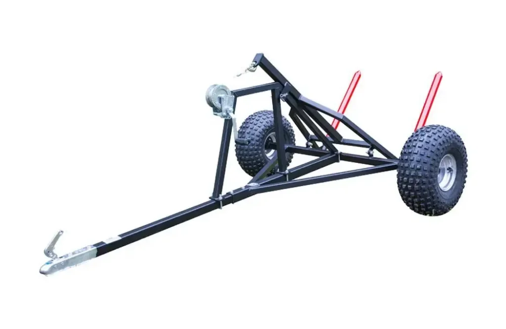 Balvagn för att transportera hö- eller halmbalar till bete, stall eller förvaring. Medföljande vinsch.