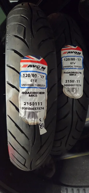 Fram/ back däck Avon Roadrider MKII motorcykeldäck i dimension 120/80-17 med belastningsindex 61 och hastighetsklass V.