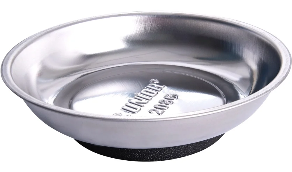 Då hjälper denna magnetbricka från Unior dig. Brickan har en kraftig magnet i botten som ser till att skruvar och bultar sitter kvar i skålen. Skålen kan även fästas på en horisontell metallplatta så att den inte rör sig så lätt.