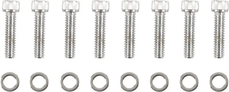 M-Eight Bolt KitMade in the U.S.A.Bolt kits for M8Head Type: SocketUnits: KitApplication: Lifter BlockBase Color: SilverBase Finish: ChromeProduct Name: Bolt KitStyle: Knurled