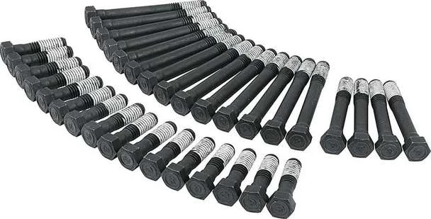Topplocksbultssats för Chevrolet Small Block, med standard samt aftermarket toppar.