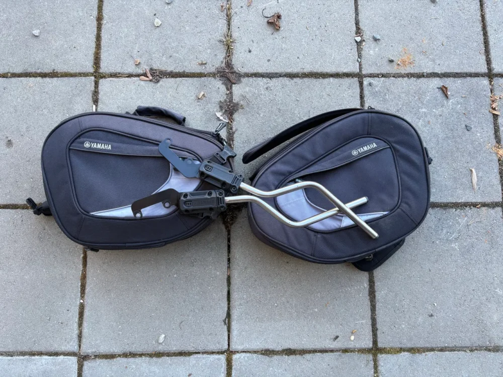 Yamaha FZ8 sidoväskor för motorcykel i svart tygmaterial. Väskorna är ett par och är utformade för montering på motorcykelns sidor. De har dragkedjefack och bärhandtag. Fästanordningar och metallstag för montering ingår enligt bild. Lämpliga för förvaring av personlig utrustning och mindre packning vid körning.