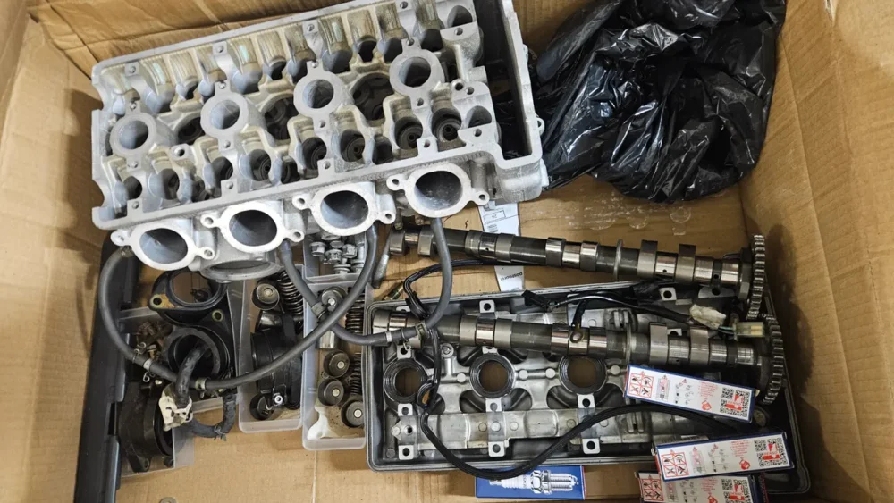 Jag fick alla dessa delar från den tidigare ägaren till motorcykeln som jag köpte från honom. Jag sålde motorcykeln nyligen och nu vill jag bli av med alla dessa delar. Motordelarna ser väldigt bra ut och visar inga skador, men jag ger ingen garanti för någonting. Plastdelarna är inte spruckna men behöver målas. Det finns fler delar där som jag inte har tagit bilder på. Vanligtvis är det bara ramen, cylindrarna och däcken som saknas, till en hel motorcykel. Jag tror att någon kan ha god användning av dem. Priset jag söker är 2000 kr för hela setet, men jag överväger alla bud förutom skambud. Jag säljer inte separat eller skickar något. Men jag kan hjälpa till med transport efter överenskommelse. Allt är packat i 2 EUR-pallar, 800x1200x1000.